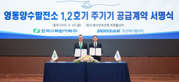 두산에너빌리티는 한국수력원자력과 3300억 원 규모의 ‘영동양수발전소 1∙2호기 주기기 공급 계약’을 체결했다고 20일 밝혔다.