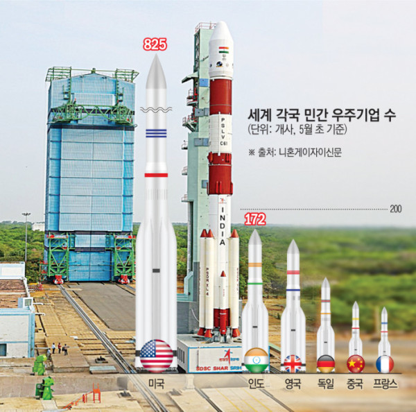 2020년 인도 정부가 우주산업에 민간기업 진입을 허용하면서 몇 년 새 인도우주연구기구(ISRO) 출신들의 창업이 활발해졌다. 글로벌 시장조사업체 트랙슨에 따르면 지난달 초 기준 인도의 민간 우주기업 수는 172개로 825개의 미국에 이어 세계 2위를 기록했다.