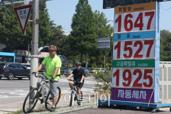 ▲이란·이스라엘 무력 충돌에 따른 중동 지정학 리스크 상승으로 국내 주유소 휘발유와 경유 주간 평균 가격이 6주 만에 상승 전환했다. 22일 한국석유공사 유가정보시스템 오피넷에 따르면 6월 셋째 주 전국 주유소의 휘발유 평균 판매가격은 전주보다 7.8원 오른 리터(ℓ)당 1635.5원으로 집계됐다. 경유 평균 판매가는 전주보다 7.6원 상승한 리터(ℓ)당 1498.2원을 나타냈다. 사진은 이날 서울의 한 주유소. 고이란 기자 photoeran@