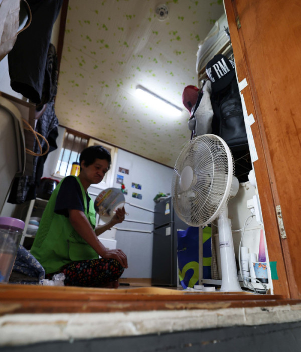 ▲장마전선이 물러가고 무더위가 찾아온 23일 서울 영등포구 영등포쪽방촌에서 한 주민이 연신 부채질을 하고 있다. 신태현 기자 holjjak@