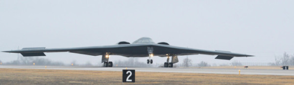 ▲주리주 화이트먼 공군기지에 B-2 스피릿이 착륙하고 있다. (출처 美중부사령부 미디어)