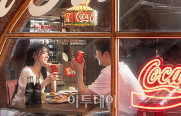 한국 코카-콜라가 23일 서울 용산구 이태원동 해방촌 신흥시장에서 ‘코카-콜라 X 신흥시장 프로젝트’로 구현한 독창적인 브랜딩을 선보이고 있다. 시장의 입구와 골목들의 크고 작은 간판부터 주요 레스토랑의 인테리어까지 코카-콜라 브랜딩을 자연스럽게 적용해 마치 오래 전부터 전해온 듯이 이질감을 최소화한 공간을 구현해냈다. 특히 이번 캠페인에 동참한 다이닝 레스토랑 11곳에 각 식당의 스타일과 메뉴 국적에 따라 서로 다른 언어로 코카-콜라 로고를 배치하는 등 다각도로 브랜딩 협업을 진행했다. 사진제공=한국 코카-콜라