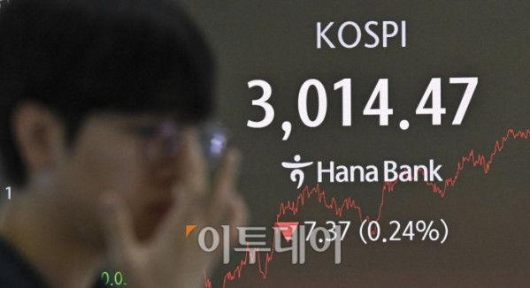 ▲원·달러 환율이 중동 위기 고조로 1380원 중반까지 치솟으며 1400원대를 위협하는 가운데 23일 서울 중구 하나은행 딜링룸 전광판에 코스피가 표시돼 있다. 이날 코스피 지수는 전 거래일보다 7.37(0.24%) 포인트 하락한 3014.47을 나타냈다. 조현호 기자 hyunho@