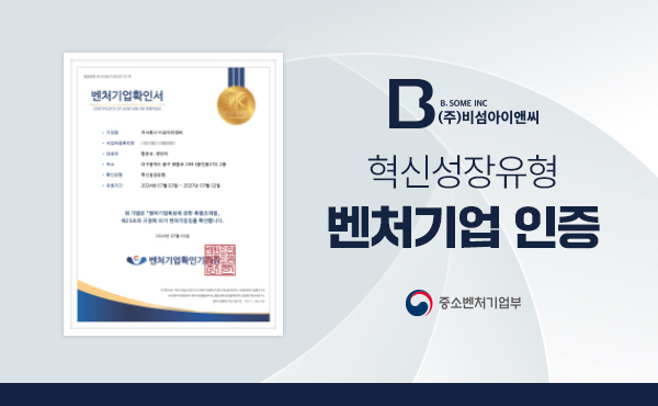 디지털 콘텐츠 광고 전문기업 비섬아이앤씨(대표 함돈규·문민아)가 중소벤처기업부 주관 ‘혁신성장유형 벤처기업 인증’을 공식 획득했다.