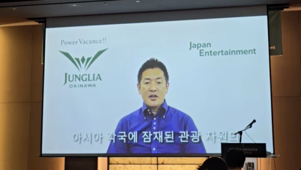 오키나와 신규 테마파크 '정글리아'를 운영하는 카토 다케시 재팬 엔터테인먼트 CEO는 24일 오전 서울 중구 플라자호텔에서 진행된 기자간담회에서 영상메시지를 통해 "정글리아는 일본과 아시아 관광산업에 있어 매우 큰 의미가 있는 프로젝트 사업"이라며 "관광대국을 목표로 하는 일본에 있어 국가적 도전이고 관광, 경제, 지역 활성화 분야에서 가장 주목 받고 있다"고 밝혔다.