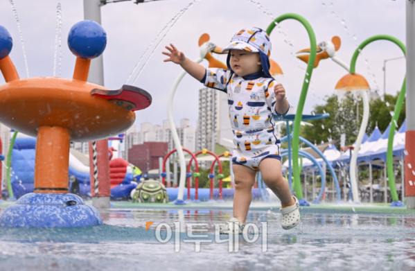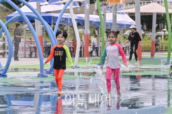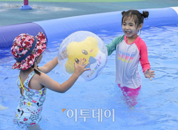 ▲24일 개장한 서울 광진구 중랑천 물놀이장에서 어린이들이 물놀이를 하며 더위를 식히고 있다. 이날 개장한 중랑천 물놀이장은 어린이들이 무료로 이용할 수 있고, 워터슬라이드, 에어풀장 등 30여 개의 물놀이 시설과 샤워실, 탈의실, 몽골텐트 등 편의시설을 갖췄다. 물놀이장은 8월 24일까지 오전 10시부터 오후 5시까지 운영하고 월요일과 우천시에는 운영하지 않는다. 조현호 기자 hyunho@