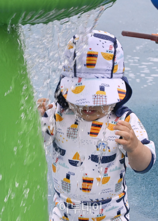 24일 개장한 서울 광진구 중랑천 물놀이장에서 어린이들이 물놀이를 하며 더위를 식히고 있다. 이날 개장한 중랑천 물놀이장은 어린이들이 무료로 이용할 수 있고, 워터슬라이드, 에어풀장 등 30여 개의 물놀이 시설과 샤워실, 탈의실, 몽골텐트 등 편의시설을 갖췄다. 물놀이장은 8월 24일까지 오전 10시부터 오후 5시까지 운영하고 월요일과 우천시에는 운영하지 않는다. 조현호 기자 hyunho@