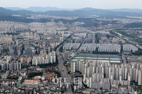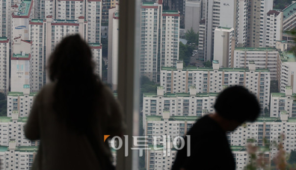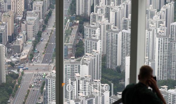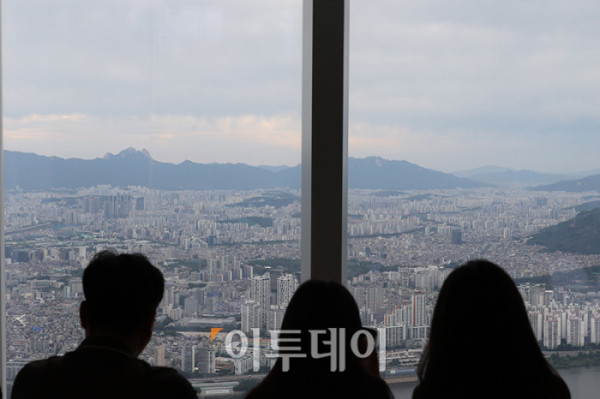 ▲소비자들의 주택 가격 상승 전망이 3년 8개월만에 최고치를 갱신했다. 24일 한국은행이 발표한 6월 소비자동향조사에 따르면 주택가격전망지수는 120으로 전월보다 9포인트 올랐다. 집값 급등기였던 2021년 10월, 125를 기록한 이후 최고치로 5개월 연속 상승세다. 사진은 이날 서울 송파구 롯데월드타워에서 내려다 본 서울 아파트 전경. 고이란 기자 photoeran@