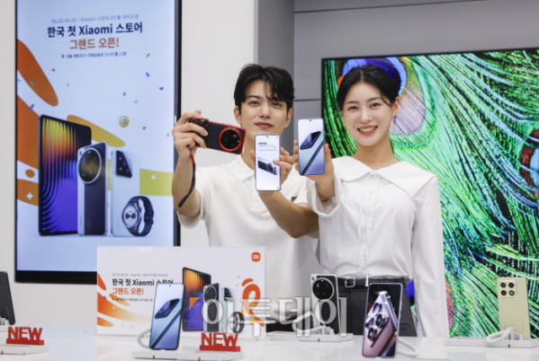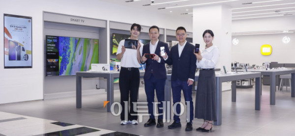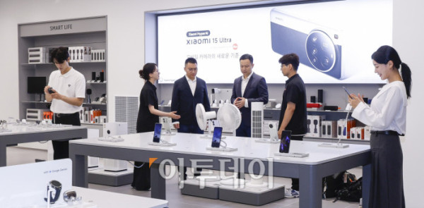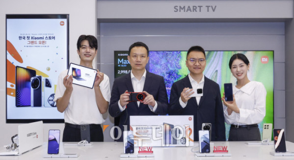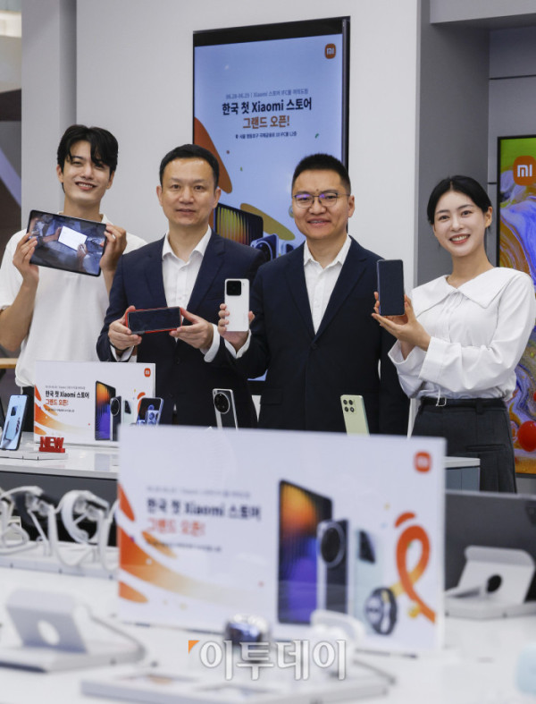▲앤드류 리(오른쪽 두번째) 샤오미 동아시아 총괄과 조니 우(오른쪽 세번째) 샤오미코리아 지사장이 25일 서울 영등포구 샤오미 스토어 IFC몰 여의도점에서 열린 첫 공식 오프라인 매장 사전 공개행사에서 모델들과 함께 제품을 소개하고 있다. 샤오미코리아는 28일 여의도 IFC몰 L2층에 첫 공식 오프라인 스토어를 오픈한다. 매장은 약 60평 규모로, 실제 생활 공간을 재현한 체험형 쇼룸 형태로 설계돼 스마트폰, 태블릿, 스마트 워치 등 전 카테고리를 체험할 수 있다. 조현호 기자 hyunho@