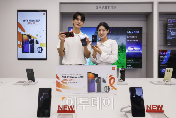 ▲25일 서울 영등포구 샤오미 스토어 IFC몰 여의도점에서 열린 첫 공식 오프라인 매장 사전 공개행사에서 모델들이 제품을 소개하고 있다. 샤오미코리아는 28일 여의도 IFC몰 L2층에 첫 공식 오프라인 스토어를 오픈한다. 매장은 약 60평 규모로, 실제 생활 공간을 재현한 체험형 쇼룸 형태로 설계돼 스마트폰, 태블릿, 스마트 워치 등 전 카테고리를 체험할 수 있다. 조현호 기자 hyunho@