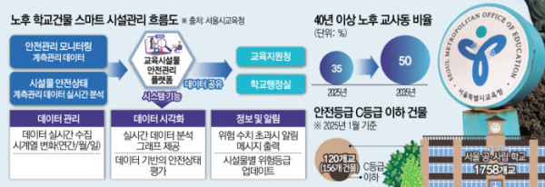 서울 지역의 노후화된 학교의 안전관리 강화를 위해 사물인터넷(IoT) 기반의 스마트 관리 시스템이 도입된다. 안전등급 체계도 기존 5단계에서 8단계로 더욱 세분화한다.