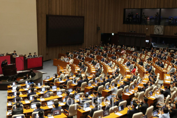 ▲이재명 대통령이 26일 서울 여의도 국회 본회의에서 2025년도 제2회 추가경정예산안에 대한 시정연설을 위해 회의장에 입장하고 있다. 더불어민주당 의원들은 박수를 치며 이 대통령을 맞이하고 국민의힘 의원들은 굳은 표정으로 자리에 서있다. 고이란 기자 photoeran@
