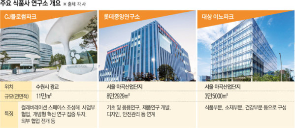 6일 식품업계에 따르면 국내 식품연구소의 주요 키워드는 ‘융합’과 ‘시너지’로, 계열사나 사업 부문별로 협업하며 R&D 효율성 제고에 방점을 찍고 있다. 식품업계 1위인 CJ제일제당은 수원시 광교에 통합연구소인 CJ블로썸파크를 운영 중이다. CJ블로썸파크는 국내 최대 식품-바이오 융복합 허브로 각지에 흩어져 있던 사업부문별 연구소를 하나로 합쳤다. 이 곳은 그룹 모태인 식품과 바이오 사업의 시너지에 초점을 맞춰 설계됐다.