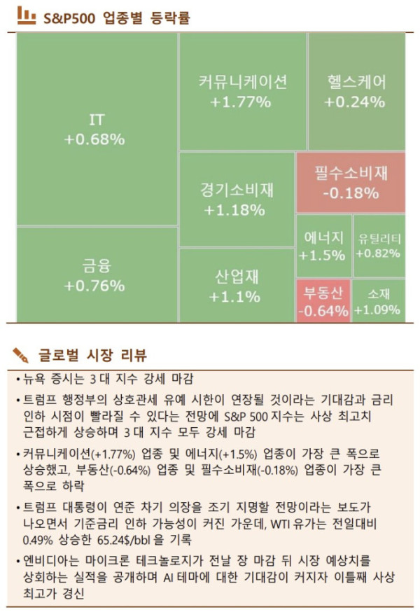 [글로벌 증시 요약] 美 뉴욕 3대 증시 강세 마감…S&P·나스닥 최고치 코앞