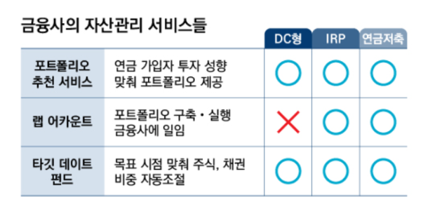 금융투자사들이 제공하는 ‘포트폴리오 추천 서비스’는 퇴직연금 자산 배분 전략을 짜는 데 도움을 받을 방법 가운데 하나다. 투자자가 포트폴리오 추천 서비스를 구독하면, 가입자 투자 성향을 고려해 맞춤형 투자전략을 제공하는 식이다.