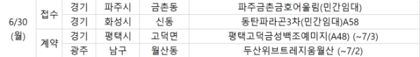 부동산 정보업체 부동산R114에 따르면 30일 오늘은 경기 파주시 ‘파주금촌금호어울림(민간임대)’과 화성시 ‘동탄파라곤3차(민간임대)A58’의 청약 접수가 진행된다.
