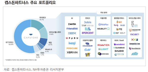 NH투자증권은 30일 캡스톤파트너스에 대해 투자자산의 중장기 밸류 확장이 기대된다고 밝혔다.