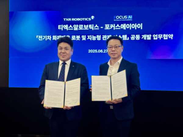 포커스에이아이는 티엑스알로보틱스와 전기차 화재 대응 로봇 개발 및 실증 사업화를 위한 업무협약(MOU)을 체결했다고 30일 밝혔다.