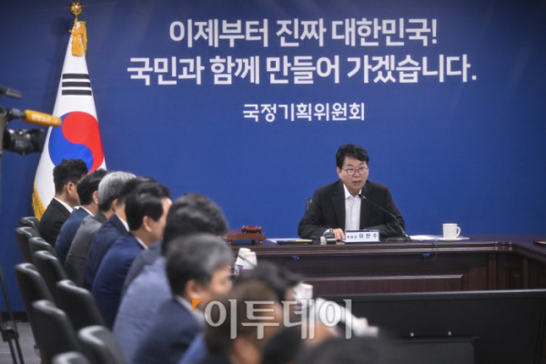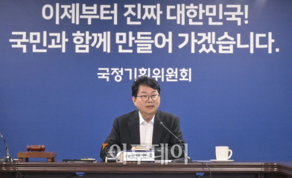 ▲이한주 국정기획위원회 위원장이 30일 서울 종로구 국정기획위원회에서 열린 제3차 전체회의에서 모두발언을 하고 있다. 조현호 기자 hyunho@