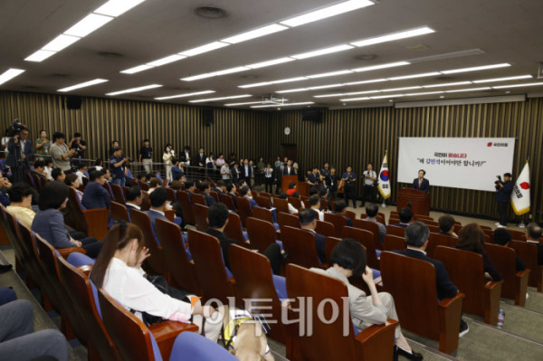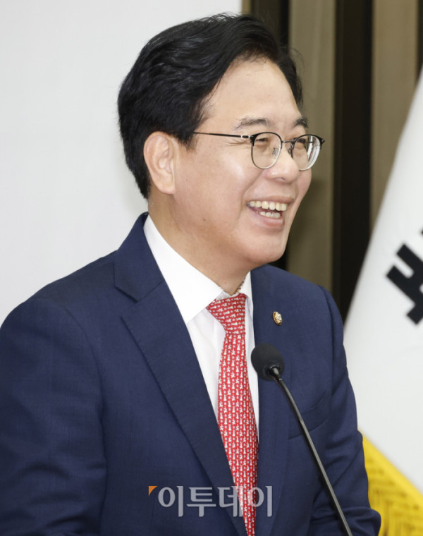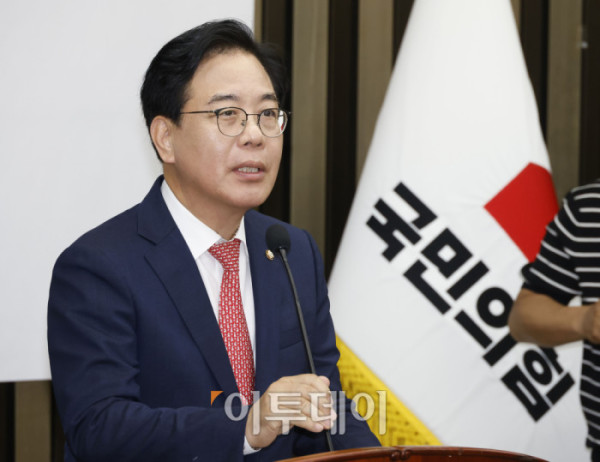 송언석 국민의힘 원내대표가 30일 서울 여의도 국회에서 열린 의원총회에서 발언을 하고 있다. 고이란 기자 photoeran@