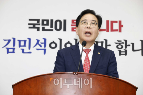 ▲송언석 국민의힘 원내대표가 30일 서울 여의도 국회에서 열린 의원총회에서 발언을 하고 있다. 고이란 기자 photoeran@