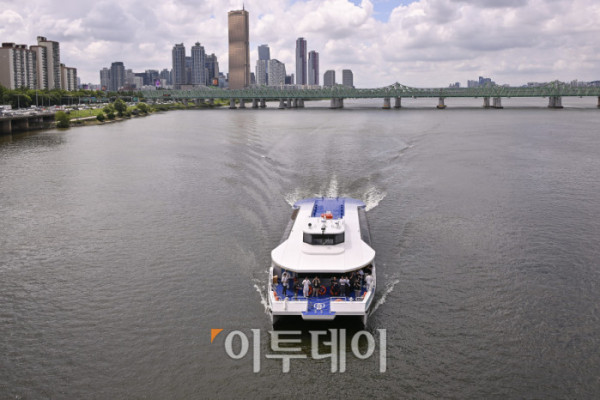 ▲한강버스 시민체험 운항 및 프레스투어가 열린 1일 서울 영등포구 노들섬 인근 한강에서 한강버스가 시범 운항하고 있다. 한강 유역에 처음으로 도입되는 친환경 수상 대중교통수단인 한강버스는 9월 중 정식운항을 통해 마곡-망원-여의도-옥수-압구정-뚝섬-잠실(마곡-여의도-잠실 급행 병행 운영) 7개 선착장, 약 31.5㎞의 거리를 오간다. 조현호 기자 hyunho@