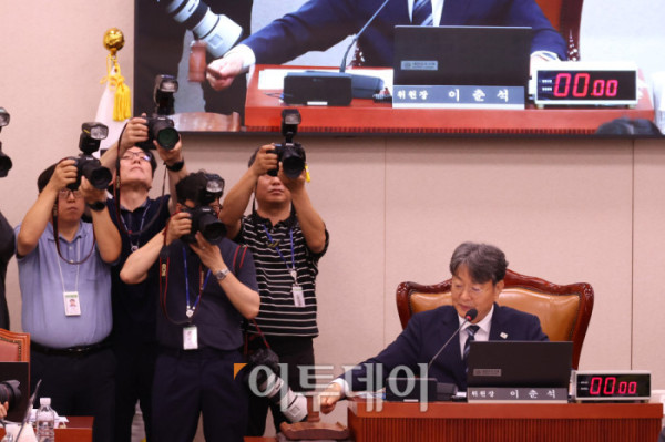 ▲1일 서울 여의도 국회에서 열린 법제사법위원회 전체회의에서 더불어민주당 소속 이춘석 위원장이 발언을 하고 있다. 고이란 기자 photoeran@