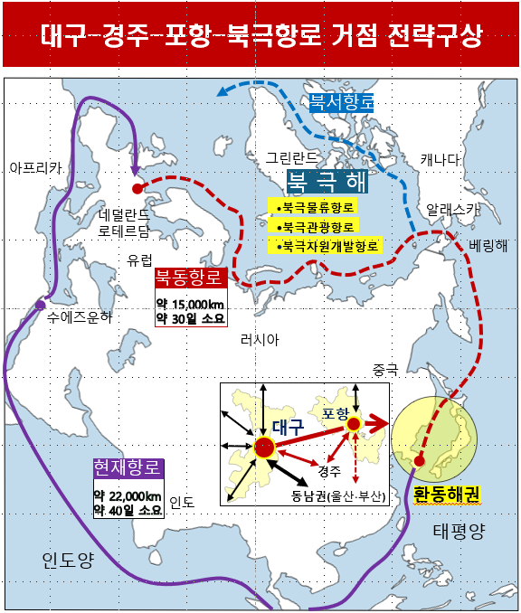 대구·경북을 중심으로 한 북극항로 개척 구상이 국가 전략으로 부상하고 있다.