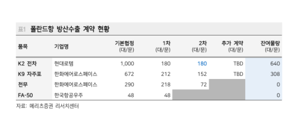 계약 지연 배경에 대해서는 “한화에어로스페이스의 K9 자주포와 천무 2차 계약보다 늦어졌는데 이는 현지 업체들의 설비 개·보수 및 조립설비 구축 비용을 포함하는 과정에서 폴란드 정부와 PGZ 간 의견 조율 시간이 추가 소요됐기 때문”이라고 분석했다.