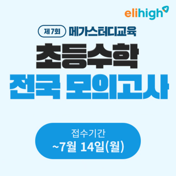 제7회 메가스터디교육 초등 수학 전국 모의고사 접수는 7월 14일까지 엘리하이 공식 홈페이지에서 하면 된다.
