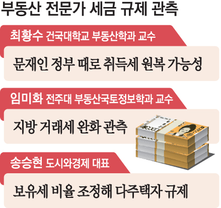 전문가들은 집값을 잡기 위해 세제 개편은 불가피한 수순일 것으로 보고 있다. 최황수 건국대학교 부동산학과 교수는 “역대 모든 정부가 집값을 잡을 때 금융 규제→세제 개편→도심 내 공급 확대→대규모 택지 개발 수순을 밟아 왔다”며 “1980년대 후반부터 정권이 바뀌어도 같은 패턴이었기 때문에 이번에도 비슷할 것”이라고 말했다.