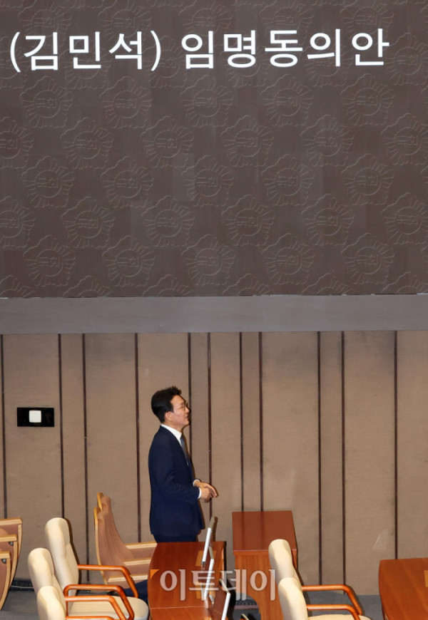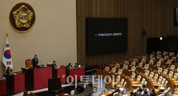▲3일 서울 여의도 국회 본회의에서 김민석 국무총리 후보자 임명동의안이 국민의힘 의원들이 불참한 가운데 상정되고 있다. 고이란 기자 photoeran@