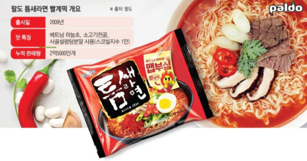 팔도의 ‘틈새라면’이 매운 맛 마니아들의 입맛을 사로잡으며 매운 라면의 대명사로 여전한 인기다. 1981년 서울 명동 작은 라면 가게의 메뉴를 팔도가 제품화해 대중적인 인기 상품으로 업그레이드 했다.