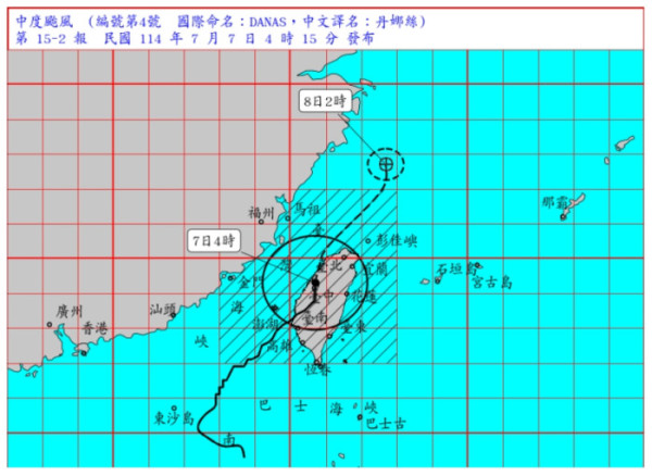 제4호 태풍 ‘다나스(Danas)’가 대만 인근 해상에 접근하며 전국적으로 강풍과 폭우가 이어지고 있다. 대만 기상청은 7일(현지시간) 오전 기준 다나스가 약화돼 경미한 태풍 수준이라고 발표했지만, 육상 및 해상 곳곳에 태풍 특보가 여전히 발효 중이다.