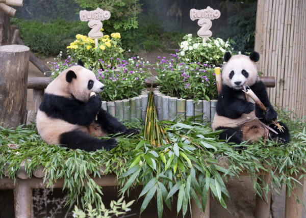 삼성물산 리조트부문가 운영하는 테마파크 에버랜드의 명물 자이언트판다 쌍둥이 자매 루이바오와 후이바오가 오늘(7일) 두돌 생일을 맞아 생일파티를 진행했다.