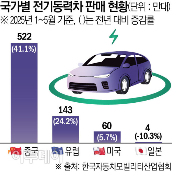 국가별로 보면 최대 시장인 중국에서는 전년 대비 41.1% 증가한 522만 대가 판매되며 글로벌 시장의 40.1%를 차지했다. 유럽은 약 143만 대가 판매돼 전년 동기 대비 24.2% 증가했다. 미국은 60만 대가 판매돼 전년 대비 5.7% 증가했으며 시장 점유율은 8.2%를 기록했다. 반면 일본은 전년 대비 10.3% 감소한 약 4만 대에 그치며 2년 연속 역성장을 나타냈다.