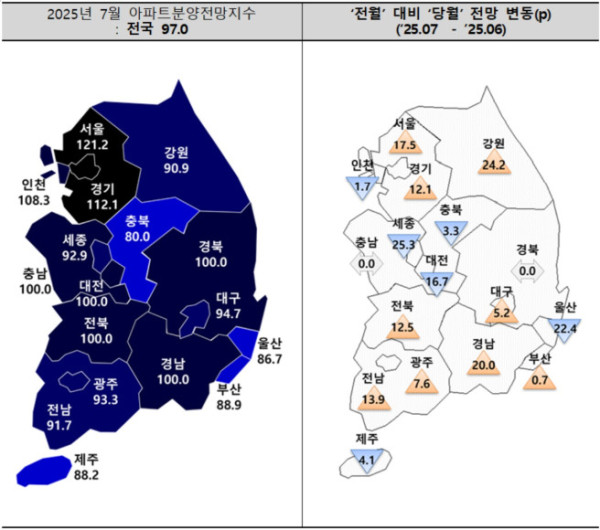 주산연은 "이재명 정부 집권 이후 빠른 속도로 2차 추경안을 편성하면서 경기 부양 기대감이 높아졌고 주택담보대출 금리가 지속적으로 인하되면서 아파트분양전망지수가 상승한 것으로 보인다"고 설명했다.