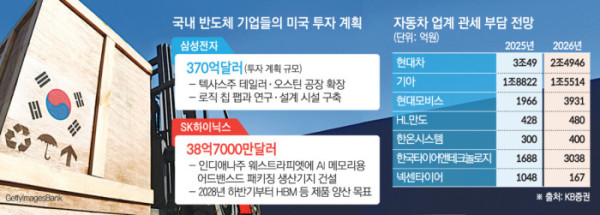 삼성전자는 미국에 2030년까지 총 370억 달러를 투자할 계획이다. 텍사스주 테일러·오스틴 공장을 확장하고, 로직 칩 연구 및 설계 시설도 구축할 예정이다. SK하이닉스는 미국 인디애나주 웨스트라피엣에 38억7000만 달러를 들여 인공지능(AI) 메모리용 패키징 생산기지와 R&D센터를 건설한다. 이곳에서는 2028년 하반기부터 고대역폭메모리(HBM) 등 AI 메모리 제품의 양산이 시작될 예정이다. 황 교수는 “협상 과정에서 미국과 대립각을 세우는 것보다는 기존에 반도체 등 우리 기업들이 이미 미국에 투자했던 내용들을 언급하며 어필할 필요가 있다”고 조언했다.