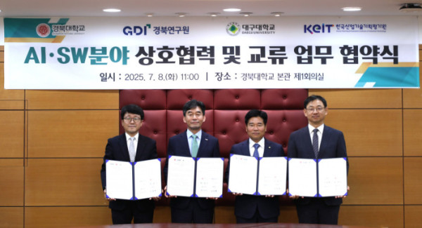 한국산업기술기획평가원(KEIT)이 대구·경북 지역의 인공지능(AI)·소프트웨어(SW) 생태계 조성을 위해 경북대학교, 대구대학교, 경북연구원과 협력에 나선다.