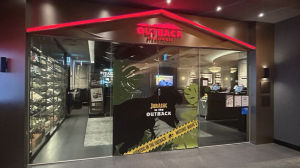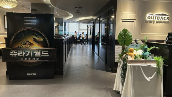아웃백은 메뉴판과 매장 곳곳에 공룡 관련 이미지를 배치하고 QR코드를 통해 공룡 프레임으로 촬영이 가능한 이벤트 등을 마련했다. 결제 영수증에는 쥬라기월드를 상징하는 도장을 찍어준다. 공룡알에서 탄생하는 콘셉트로 만든 ‘아웃백X쥬라기월드 다이노 인형’도 한정 판매한다. 다만 일반적인 공룡 관련 이미지 외 차별화한 쥬라기월드 콘셉트 경험 요소는 미미했다.