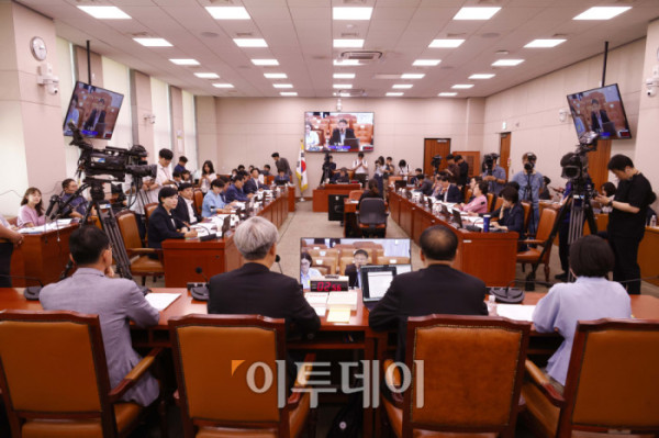 ▲9일 서울 여의도 국회 법제사법위원회 전체회의에서 열린 검찰개혁 법안 관련 공청회에서 송석준 국민의힘 의원이 의사진행 발언을 하고 있다. 고이란 기자 photoeran@