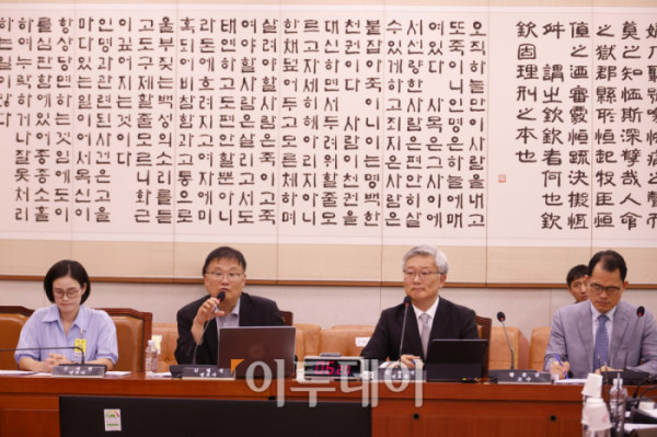 ▲김필성 변호사가 9일 서울 여의도 국회 법제사법위원회 전체회의에서 열린 검찰개혁 법안 관련 공청회에서 법안 관련 의견 진술을 하고 있다. 고이란 기자 photoeran@
