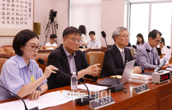 ▲김예원 변호사 9일 서울 여의도 국회 법제사법위원회 전체회의에서 열린 검찰개혁 법안 관련 공청회에서 법안 관련 의견 진술을 하고 있다. 고이란 기자 photoeran@