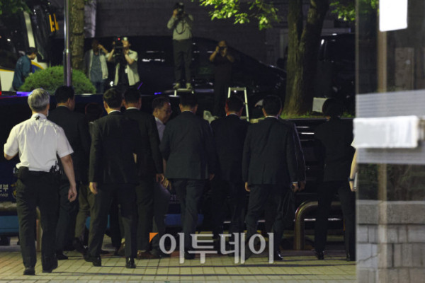 12.3 비상계엄 사태 관련 내란 혐의를 받는 윤석열 전 대통령이 9일 서울 서초구 서울중앙지방법원에서 구속 전 피의자 심문(영장실질심사)을 마치고 대기 장소인 서울구치소로 이동하고 있다. 사진공동취재단