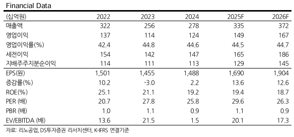 DS투자증권은 2분기 영업이익 440억 원(전분기 대비 26%, 전년대비 33%, 영업이익률 46%)으로 분기 기준 역대 최대 실적을 예상했다.