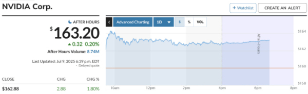 인공지능(AI) 개발에 필수적인 첨단 반도체에서 막강한 경쟁력을 유지하고 있어 성장에 대한 기대감이 계속되고 있다. 영국 파이낸셜타임스(FT)가 “중국용으로 특별히 설계한 새로운 반도체를 이르면 9월에 출시할 계획”이라고 보도한 것도 이날 주가에 호재로 작용했다.