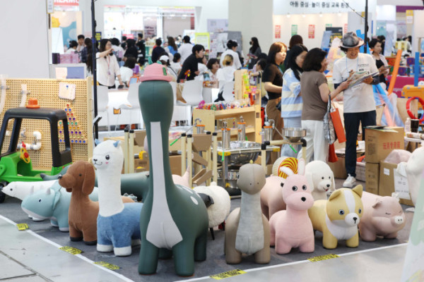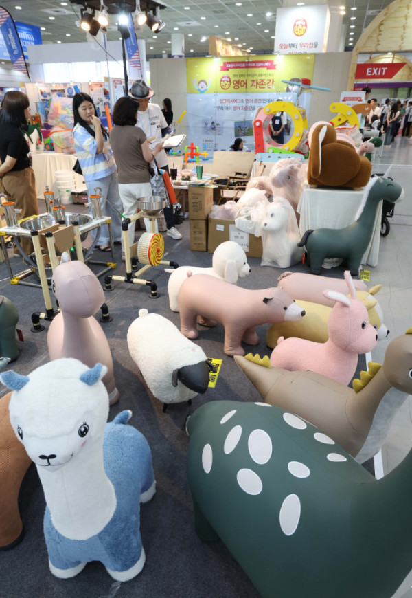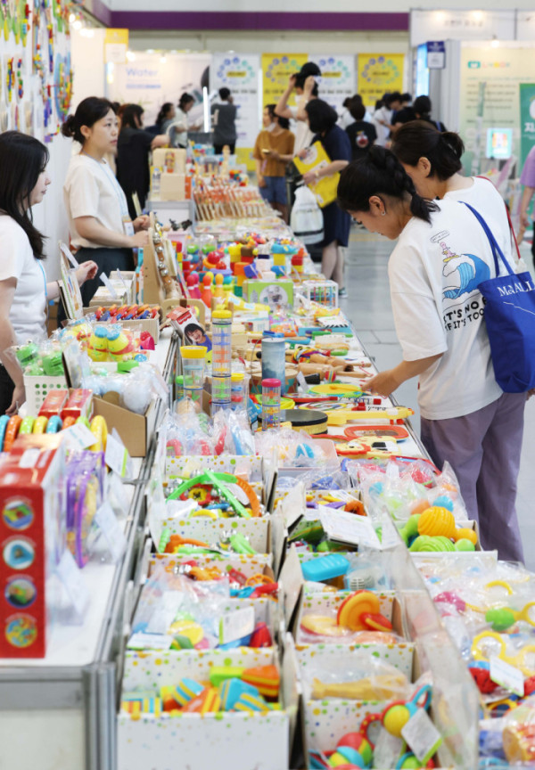 10일 서울 강남구 코엑스에서 열린 제55회 서울국제유아교육전·키즈페어에서 참관객들이 다양한 유아용품을 살펴보고 있다. 서울국제유아교육전은 국내 최대 규모의 유아 전문 전시회로, 유아동 관련 교육, 용품, 서비스, 생활, 문화를 소개하는 자리다.