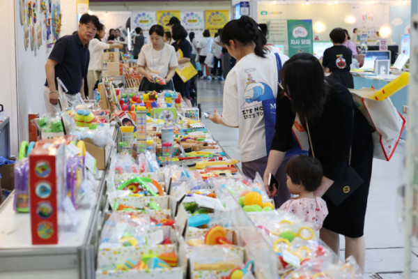 ▲10일 서울 강남구 코엑스에서 열린 제55회 서울국제유아교육전·키즈페어에서 참관객들이 다양한 유아용품을 살펴보고 있다. 서울국제유아교육전은 국내 최대 규모의 유아 전문 전시회로, 유아동 관련 교육, 용품, 서비스, 생활, 문화를 소개하는 자리다. 신태현 기자 holjjak@