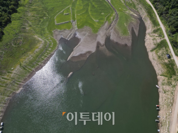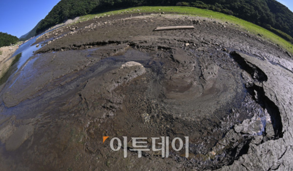 ▲전국이 연일 37도가 넘는 폭염이 이어지고 있는 가운데 10일 강원 춘천시 소양강 상류지역 하천이 바닥을 드러내고 있다. 조현호 기자 hyunho@