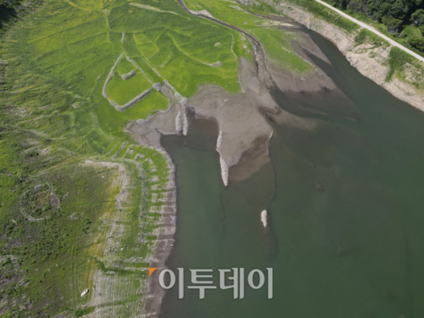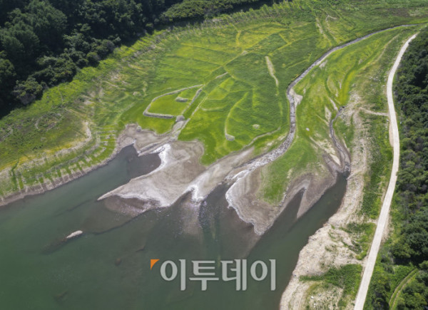 전국이 연일 37도가 넘는 폭염이 이어지고 있는 가운데 10일 강원 춘천시 소양강 상류지역 하천이 바닥을 드러내고 있다. 조현호 기자 hyunho@